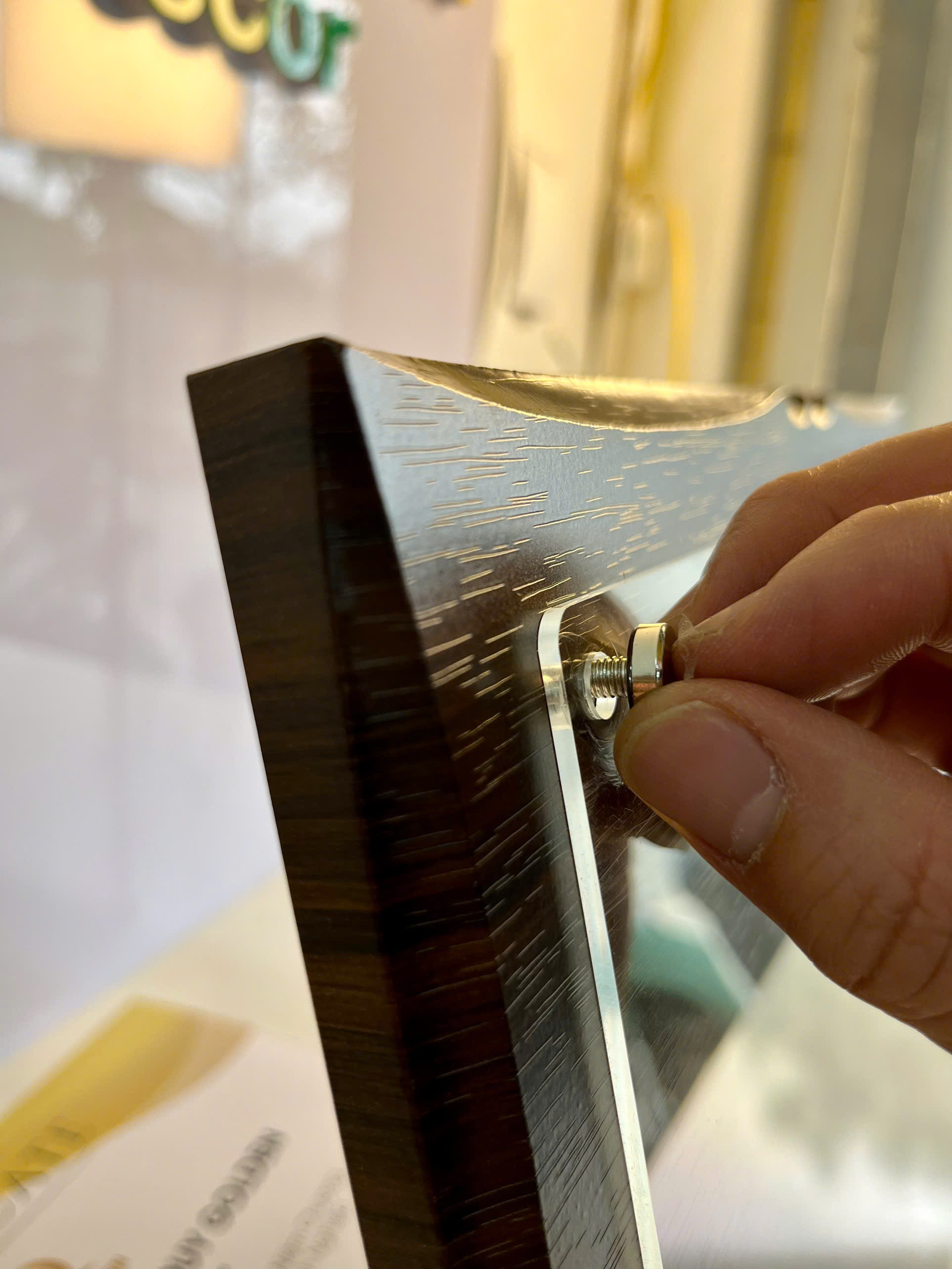 Chất liệu: ✔️ Khung viền gỗ MDF phủ vân gỗ tự nhiên, chống trầy xước, bền đẹp ✔️ Mặt kính mica trong suốt cao cấp, dễ lau chùi, chống bụi bẩn Kích thước phổ biến: ✔️ 20 x 30 cm (A4) ✔️ 25 x 35 cm (A3) ✔️ Có thể đặt theo kích thước yêu cầu Thiết kế: ✔️ Hệ thống ốc vặn kim loại chắc chắn, dễ tháo lắp ✔️ Phù hợp trưng bày bảng khen, chứng nhận, quà tặng doanh nghiệp